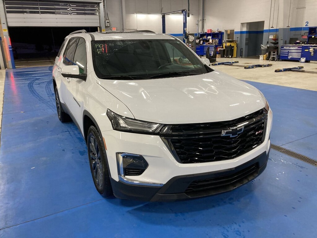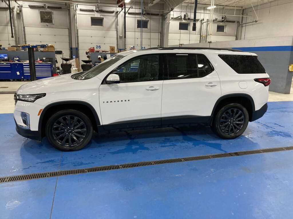 Recent Arrival! Passed Dealer Inspection, Traverse RS, 4D Sport Utility, 3.6L V6 SIDI VVT, 9-Speed Automatic, AWD, Summit White, Jet Black/Spice Red Leather. Summit White 2023 Chevrolet Traverse RS AWD 9-Speed Automatic 3.6L V6 SIDI VVT