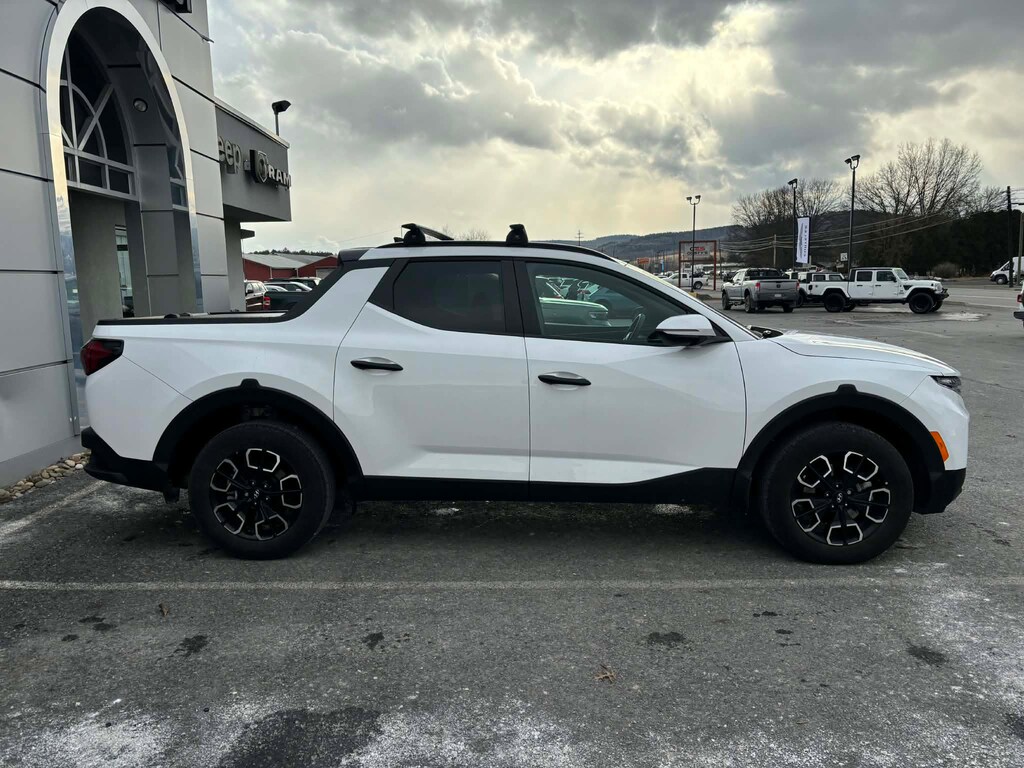 This pristine, one-owner, accident-free 2024 Hyundai Santa Cruz SEL AWD in Atlas White is a versatile, compact adventure pickup that blends car-like handling with practical truck utility. It features a capable 2.5L I4 engine paired with an 8-speed automatic transmission with SHIFTRONIC and confident all-wheel drive, offering smooth performance and solid traction for daily driving or light off-road use. A fresh oil change has been completed, and it rolls on 18" x 7.5J alloy wheels that complement its modern, rugged styling, enhanced by roof side rails, a conventional power sunroof, and a rear sliding glass window with defroster.
