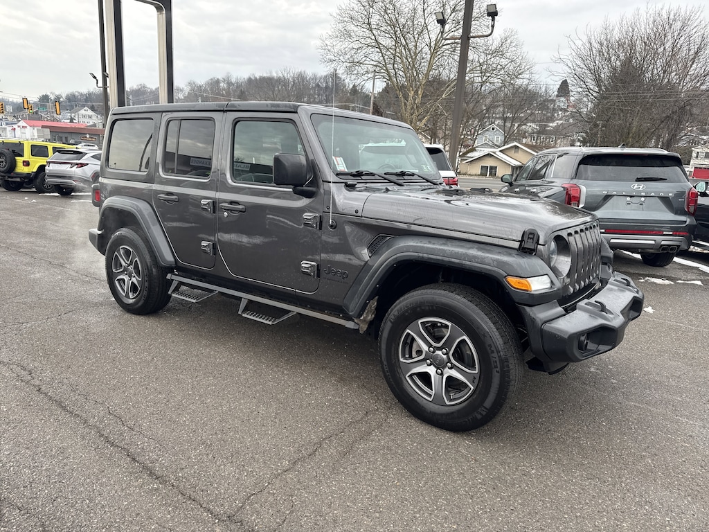 Our One Owner, Accident Free 2023 Jeep Wrangler Sport S 4 Door 4X4 with the Upgraded Radio & Premium Audio is comfortably equipped to conquer your world in Granite Crystal Metallic! Motivated by a 3.6 Liter Pentastar V6 supplying 285hp to an 8 Speed Automatic transmission. This Four Wheel Drive SUV also has robust Dana axles to help stand up to tough terrain, and it achieves nearly 24mpg on the highway. Carrying a classic Jeep grille up front, our Wrangler grabs attention with fog lights, bold fender flares, alloy wheels, skid plates, a sport bar, heated power mirrors, and an easy-to-remove soft top. It's an aggressive design that looks great on the road or off!An intelligent layout greets you in our Sport S cabin with convenient features like supportive heated cloth front seats, a heated multifunction steering wheel, air conditioning, power accessories, cruise control, and pushbutton ignition. You can roam free with confidence, too, knowing our Upgraded Radio & Premium Audio Pack can keep you connected with WiFi compatibility, an 8.4-inch touchscreen, full-color navigation, Android Auto, Apple CarPlay, Bluetooth, voice command, Off-Road Info pages, and an Alpine audio system for your favorite soundtrack.For safety's sake, Jeep provides a backup camera, ABS, stability/traction control, hill-start assist, tire-pressure monitoring, advanced airbags, trailer-sway damping, and more. With all that, our Wrangler Sport S is an international off-road icon! Save this Page and Call for Availability. We Know You Will Enjoy Your Test Drive Towards Ownership!